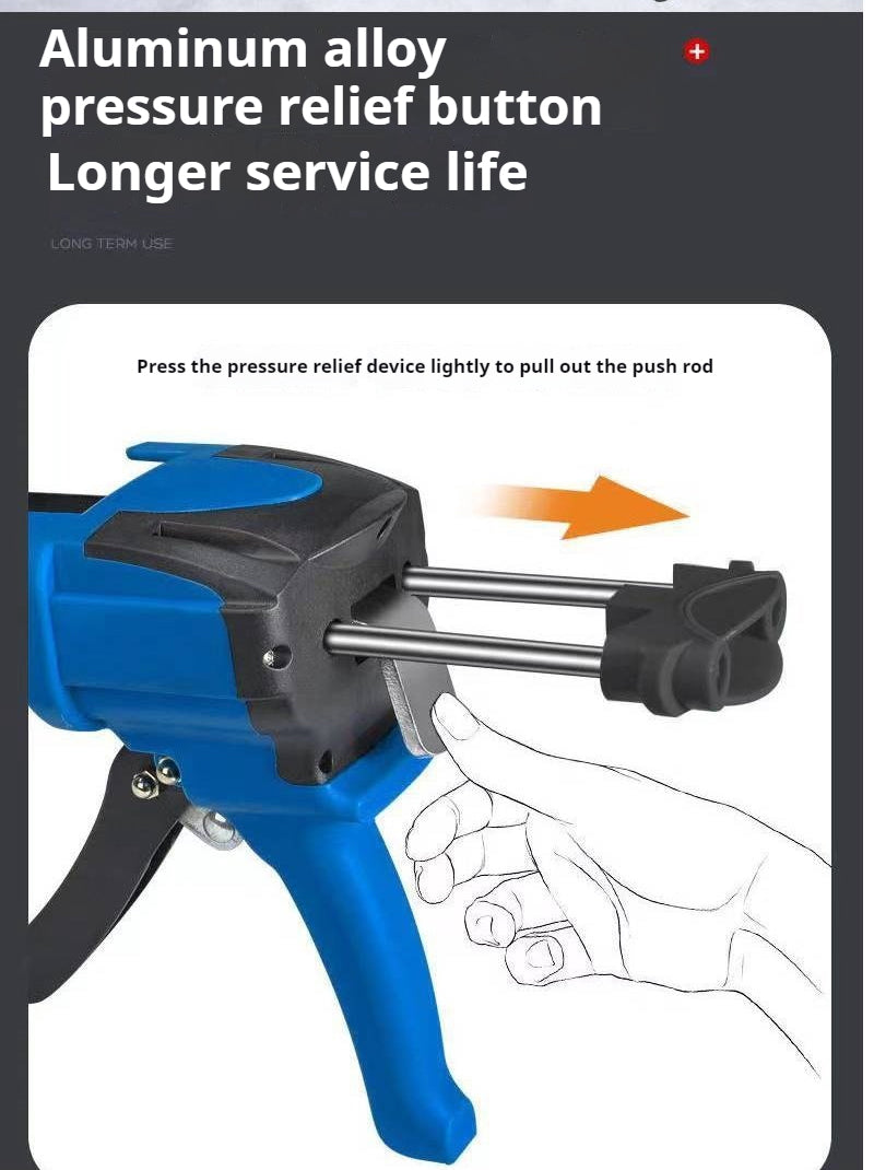 1: 1AB caulking gun (two-piece caulking gun), used for injection (extrusion) of dual component differentiation anchoring adhesive (anchoring adhesive) such as 360ml and 390ml drug packages. It is a very popular hardware tool (DIY hand tool) in the construction and construction industry, suitable for indoor and outdoor use.